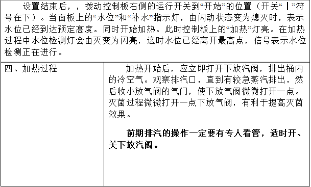 適用公司研發室的YM75不銹鋼智能型立式電熱蒸汽消毒器 三、不銹鋼智能型立式電熱蒸汽消毒器(YM75)操作規程