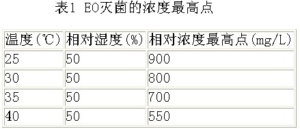 3 環氧乙烷的控制參數 EO滅菌過程關鍵參數的控制是達到滅菌質量的保證其滅菌的關鍵參數為EO的濃度、滅菌時腔體內的濕度、溫度和時間。這些關鍵因素直接影響滅菌的效果;每個關鍵因素在程度上可有所不同,但相互之間必須達到平衡。
